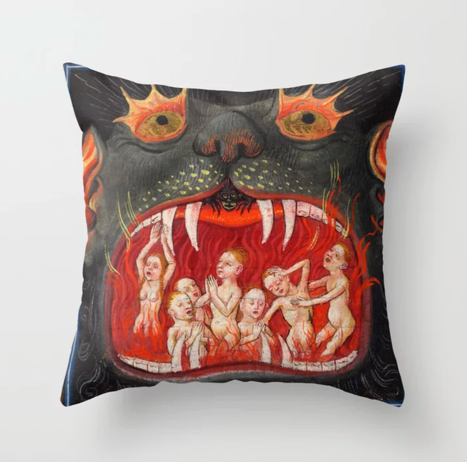 Mouth of Hell Medieval Art Throw Pillow