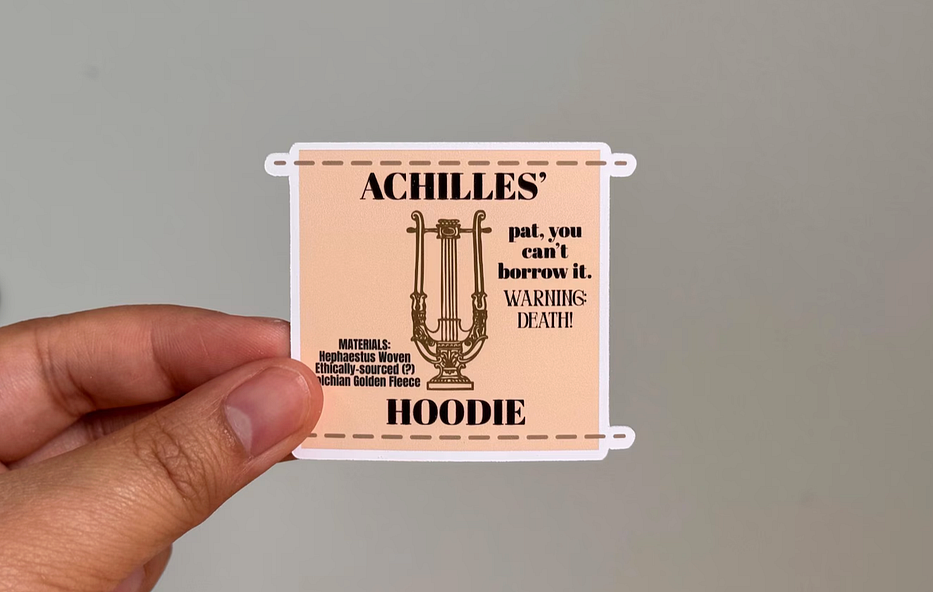 Achilles’ Hoodie Clothing Tag Sticker